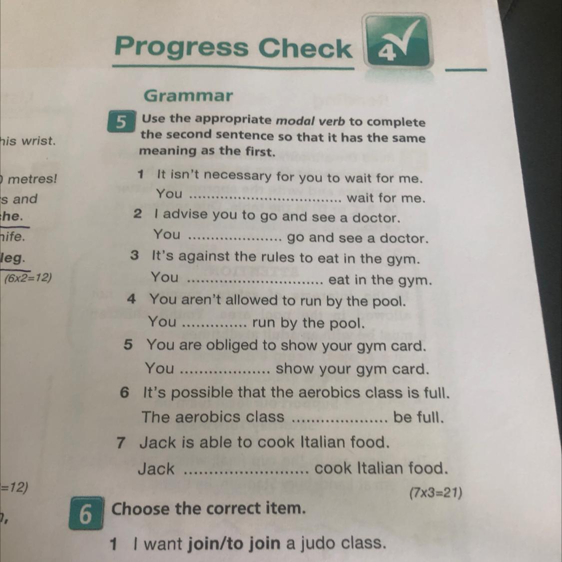 6 The aerobics class might be full.