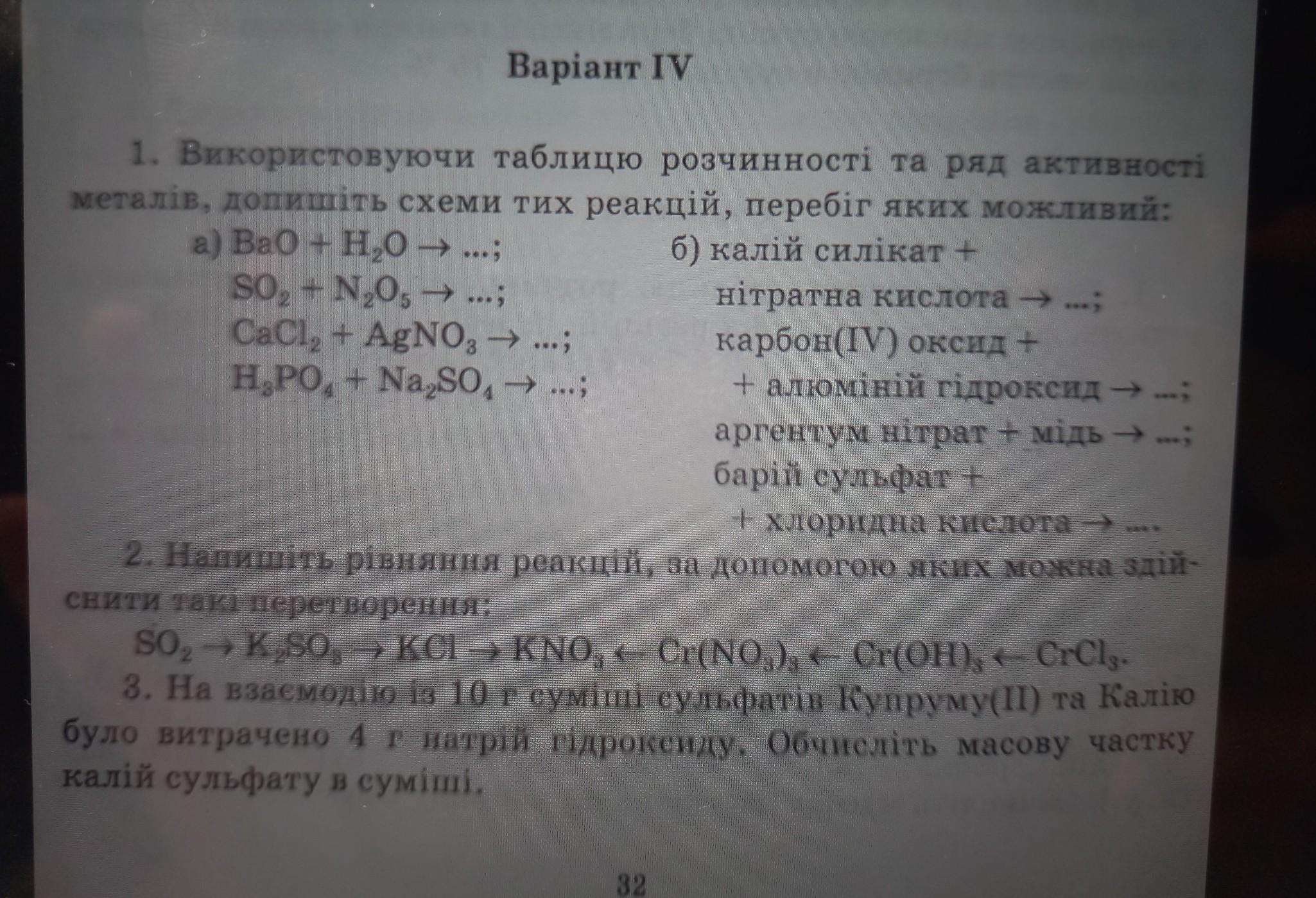 2. SO2 -> K2SO3 -> KCl -> KNO3 <- Cr(NO3)3 <- Cr(OH)3 <- CrCl3