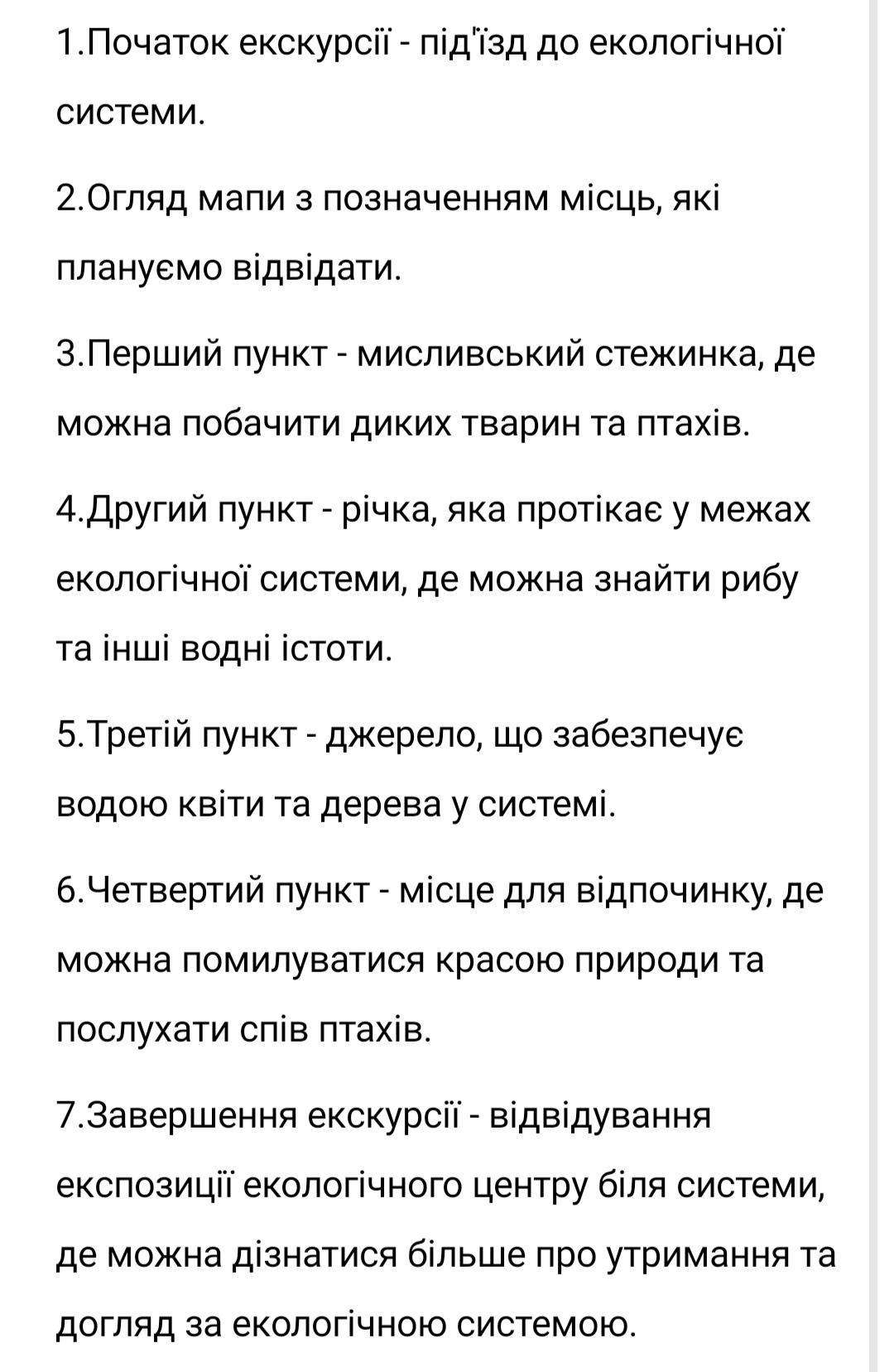 скласти план проведення з коротким описом екскурсії по маленькій екологічній системі яка розташована біля вашого будинку проживання (можете зробити біля свого будинку все одно срочно!даю50 баллів!)