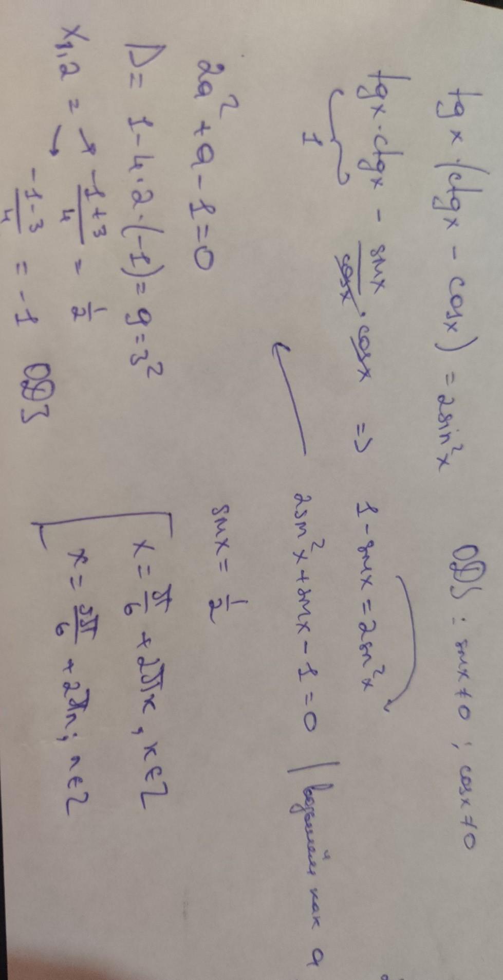 Решите уравнение tgx(ctg x - cos x) = 2 sin²x.
