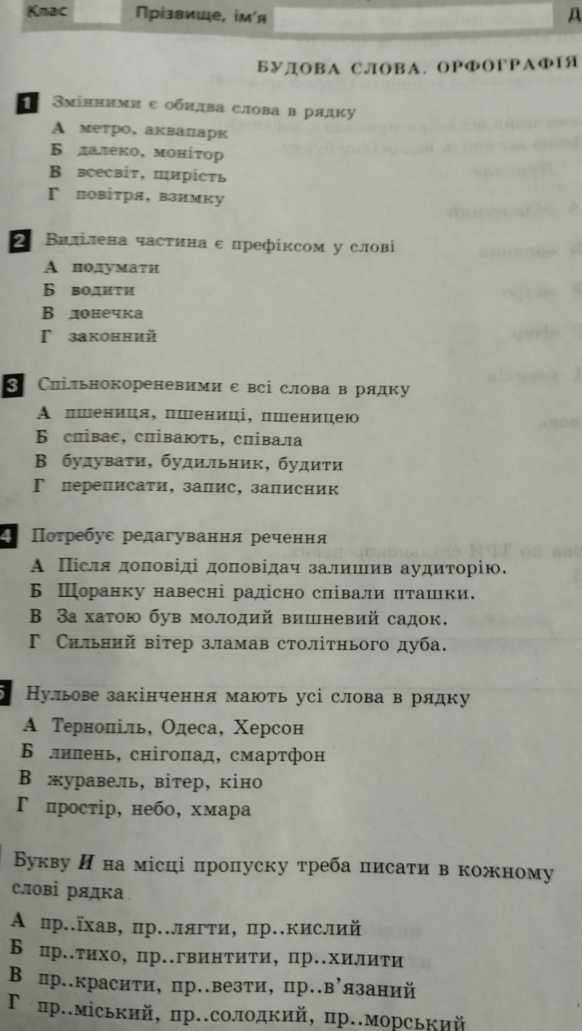 Відповідь:1-В, 2-А, 3-Г, 4- А, 5-Б, 6 -