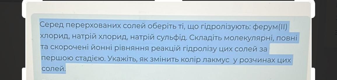 даю 100б. Серед перерхованих солей оберіть ті, що гідролізують: Ферум (II)