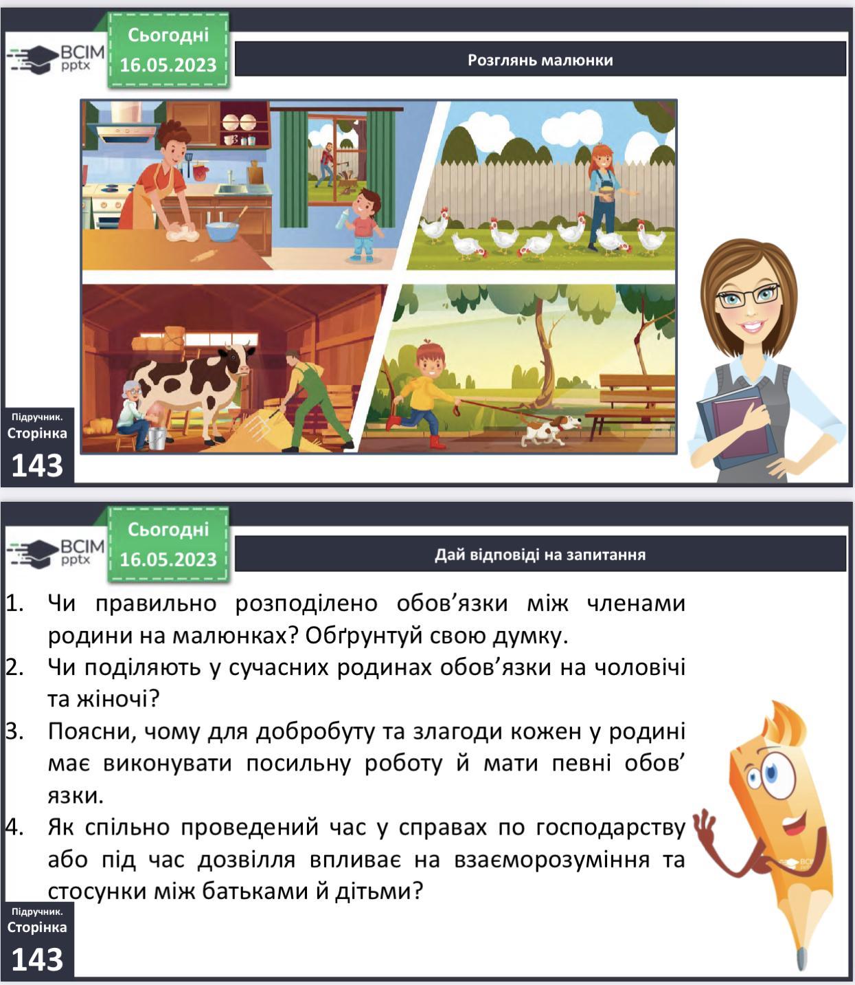 2. не завжди, в кожній сім'ї по різному, але обов'язки не треба поділяти на жіночі й чоловічі
