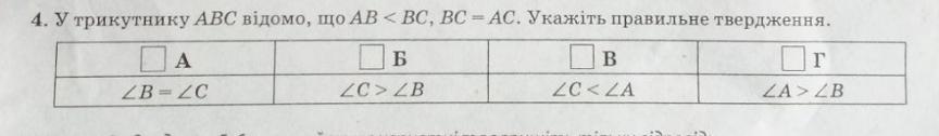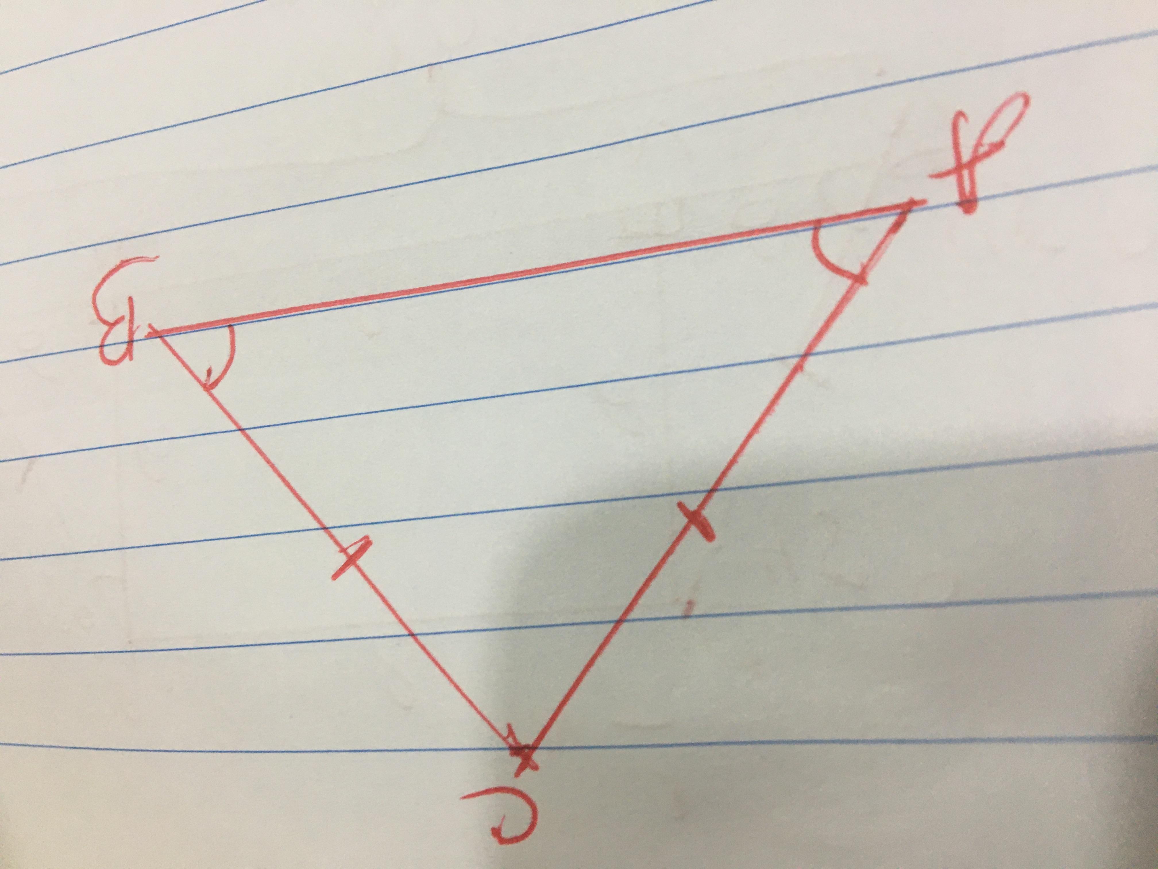 Основание АВ меньше боковой стороны ВС,напротив меньшей стороны лежит меньший угол