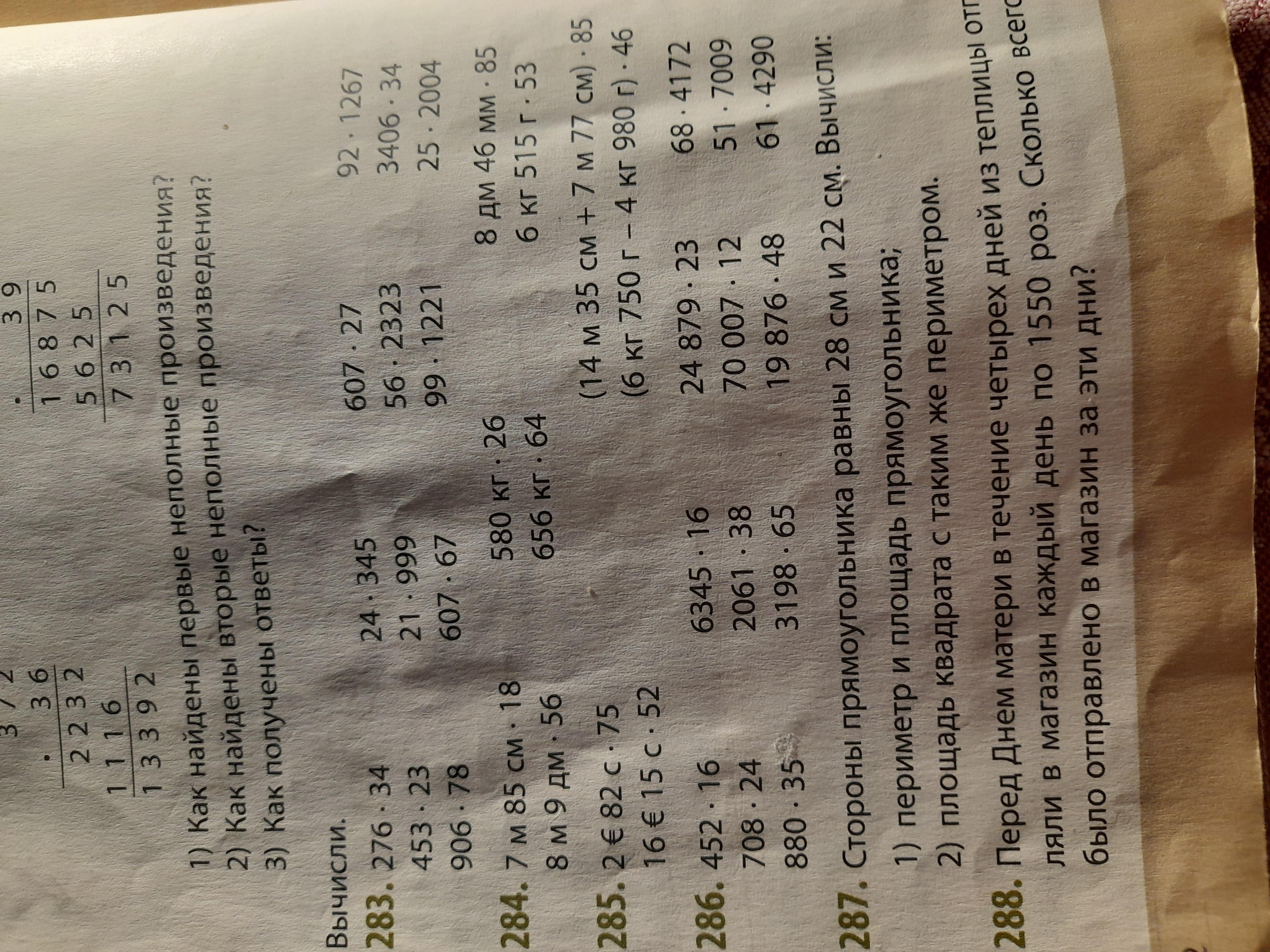 Письменное произведение двухэтажных чисел всегда сводится к умножению на однозначное число.Задание номер 286 ( первая строка).