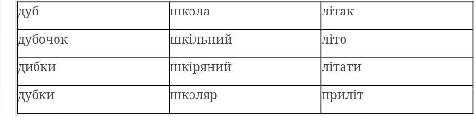 З кожної колонки випишіть «зайве» слово, доберіть до нього споріднені слова. Поясніть свій вибір.