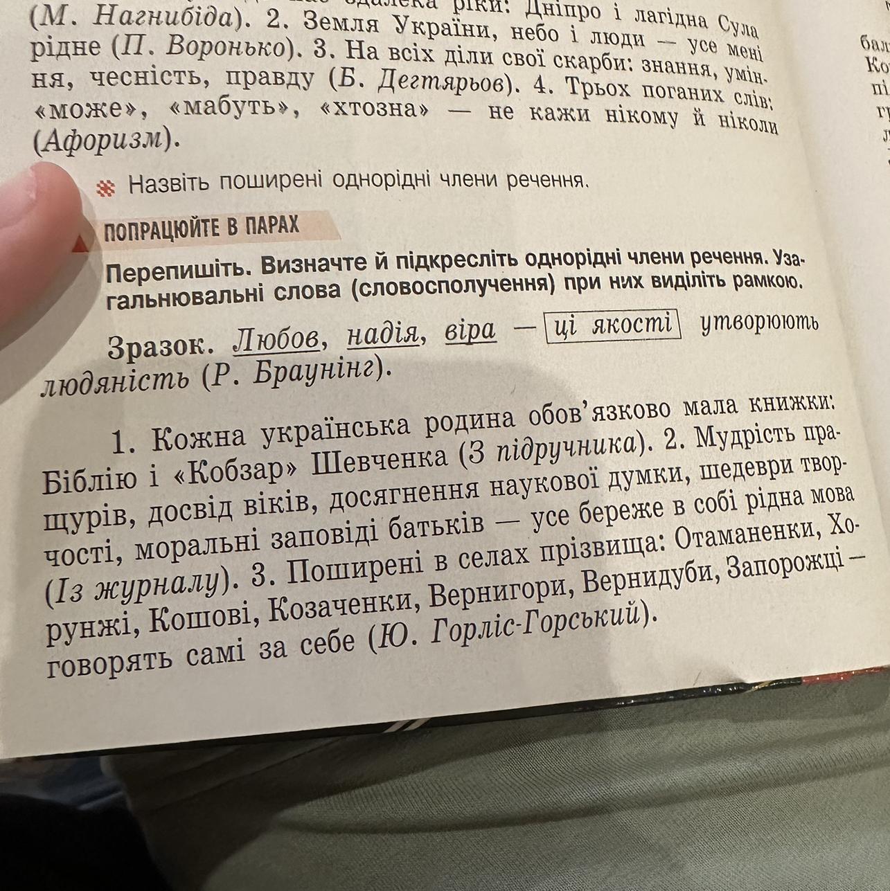 1. уз. слово: книжки, одн. члени: біблія і кобзар Шевченка