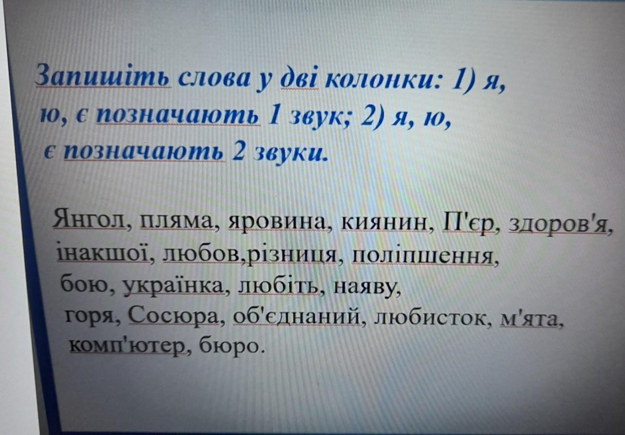 1) я, ю, є позначають 1 звук: