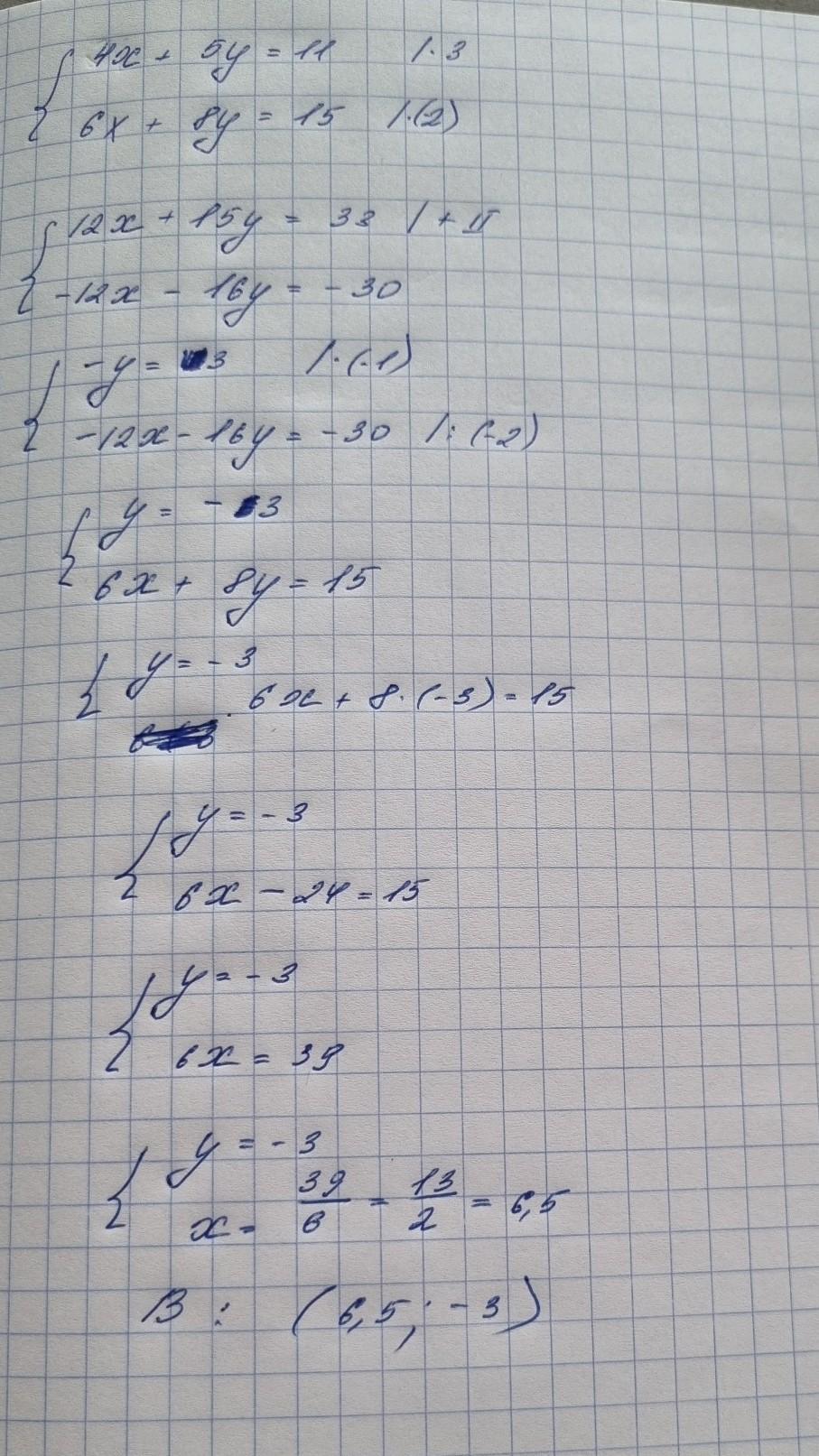Ответ : х=6,5; у=-3