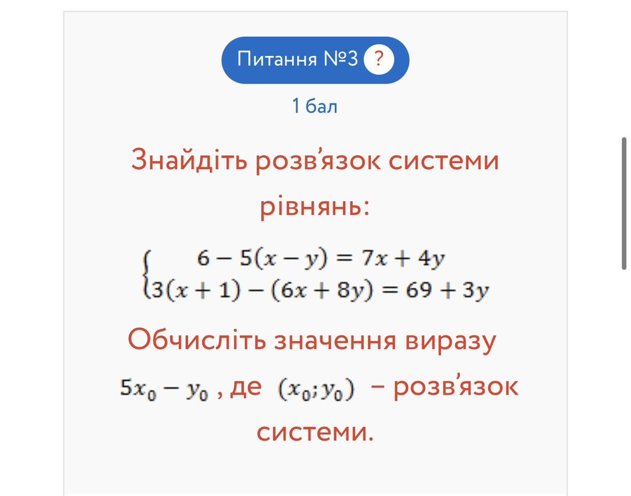 6 - 5x +5y =7x +4y