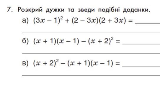 а) (3x-1)²+(2-3x)(2+3x)=(3x)²-2•3x•1+1²+2•2+2•3x+(-3x)•2+(-3x)•3x=9x²-6x+1+4+6x-6x-9x²=5-6x
