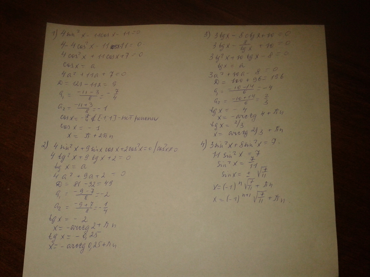4sin2 x + 9sin x cos x + 2cos2 x = 0