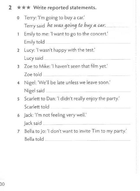 7. Bella told Jo that she didnt want to invite tim to her party.