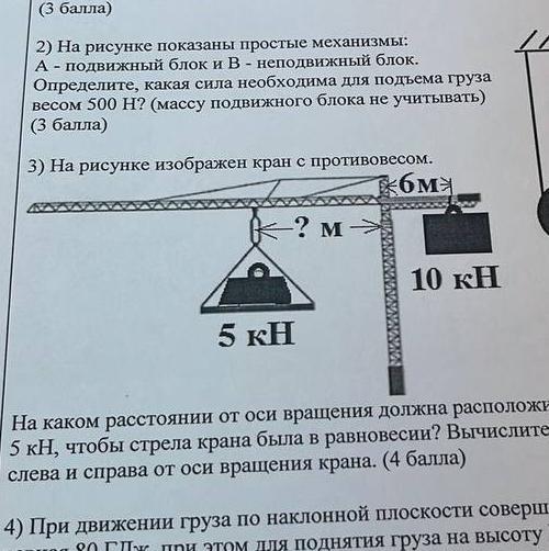 На каком расстоянии от оси вращения должна расположиться нагрузка в 5 кН, чтобы стрела крана была в равновесии? Вычислите моменты сил слева и справа от оси вращения крана