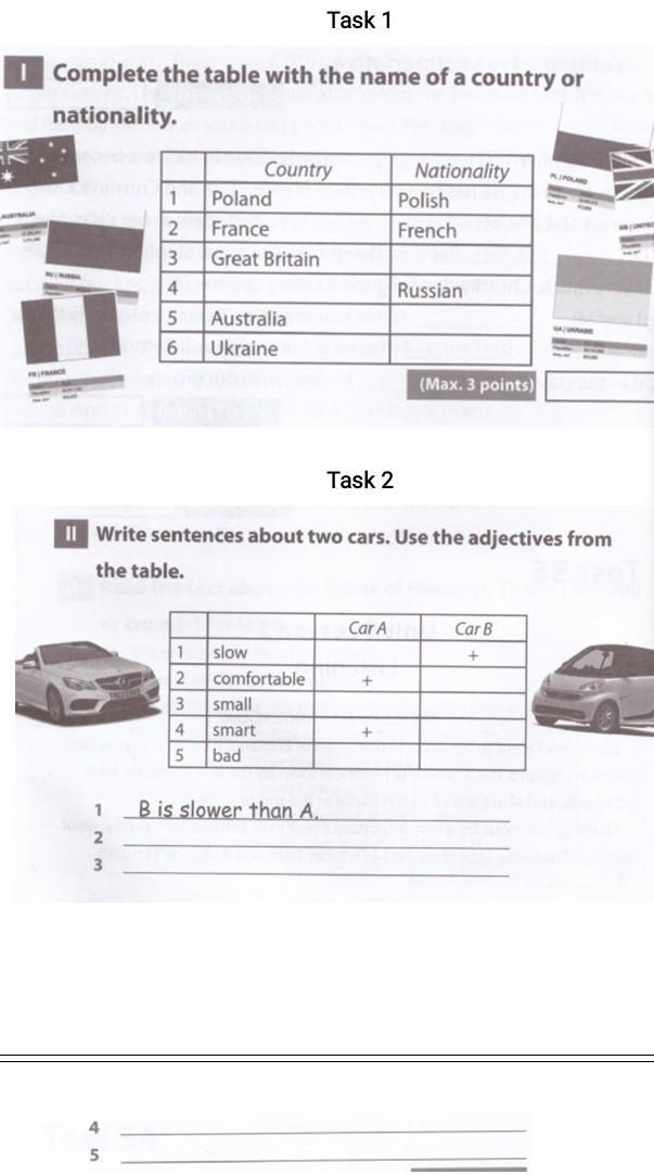 Task 1. Great Britain- English; Russia-Russian; Australia- Australian; Ukraine-Ukrainian