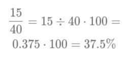 1. [4 балла] Переведите проценты в дробь и дробь в проценты: a) 14,5% 6) 15 % 40 B) 17,18 г) 15 10 50