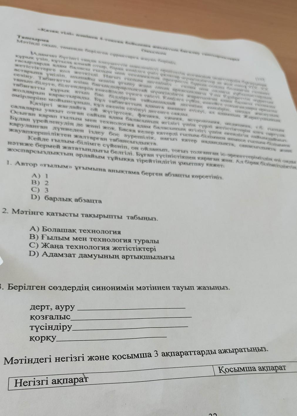 4. Мәтіндегі негізгі жане косымша 3 акпараттард Негiзгi акпарат