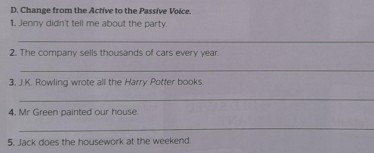 5. The housework is done by Jack at the weekend.
