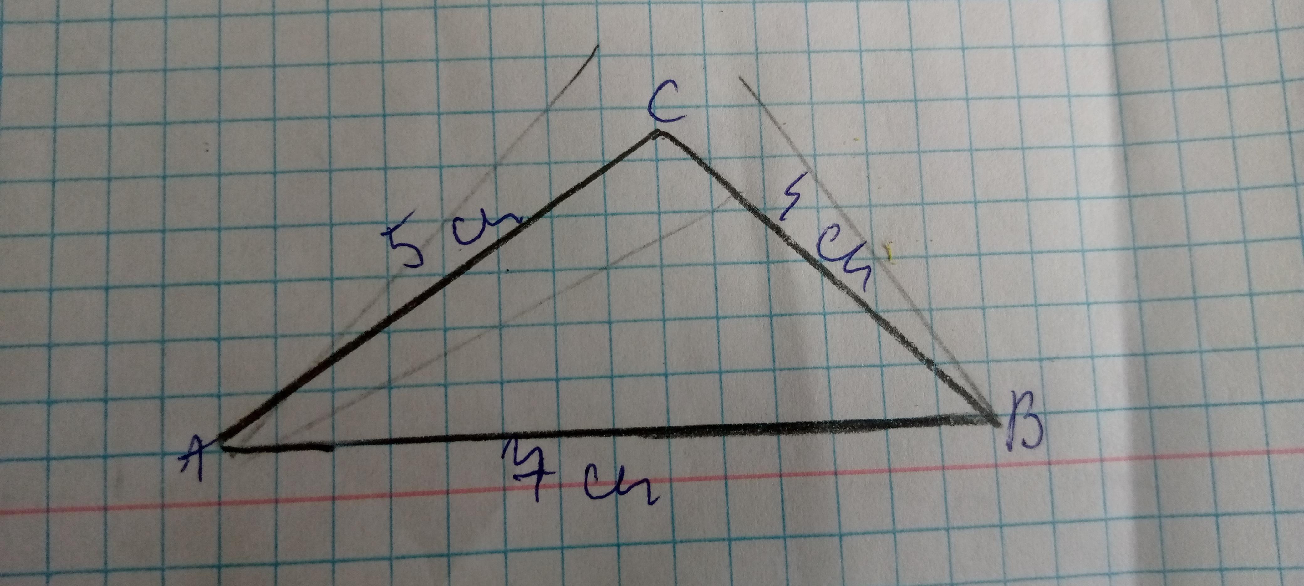 Побудуйте трикутник АВС із сторонами АВ=7 см, ВС=4 см, АС= 5см.
