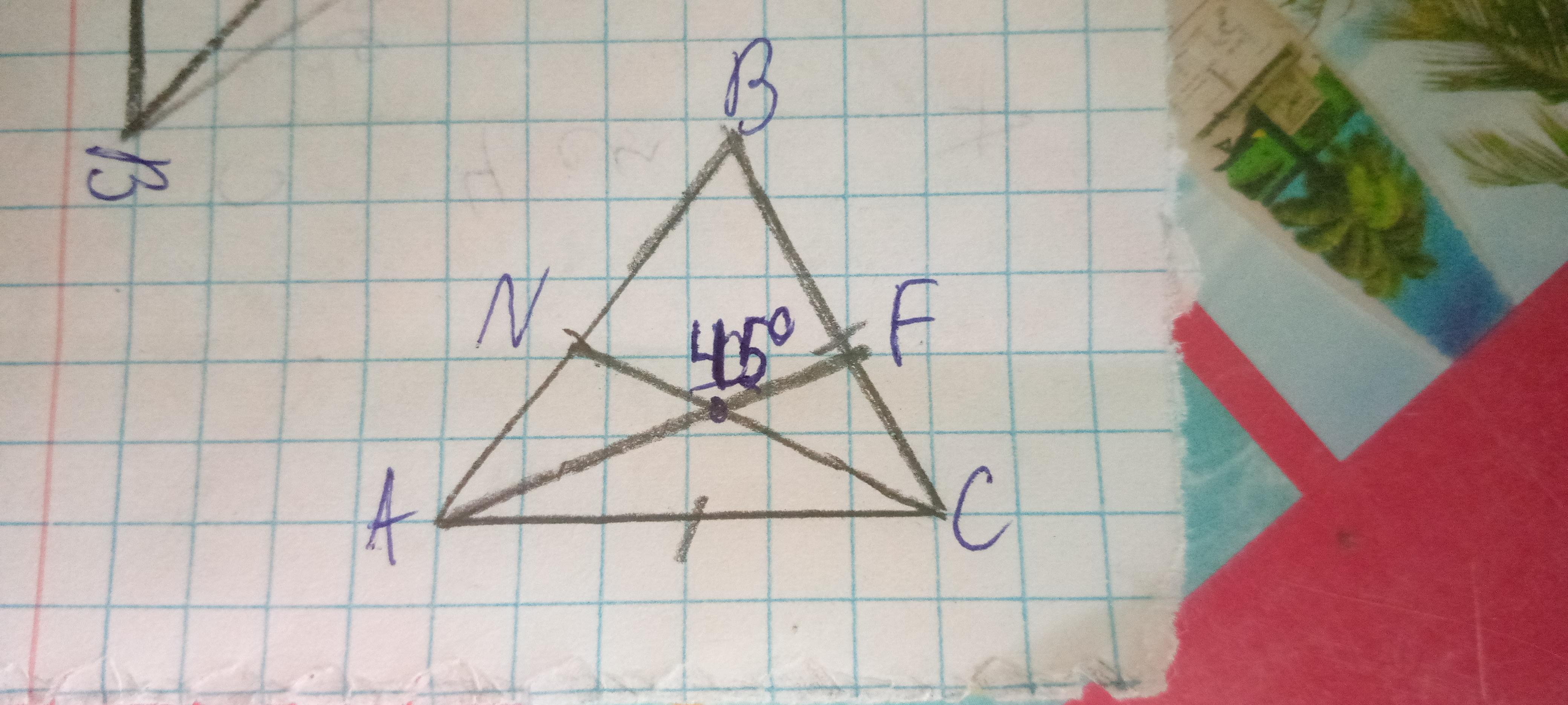 В рівносторонньому трикутнику АВС провели медіани AF та CN, які перетинаються в точці О. Знайти градусну міру кута NOF.