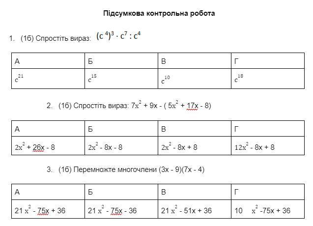 коли є ділення, то степені навпаки віднімаються: c19: c4= c19-4= c15