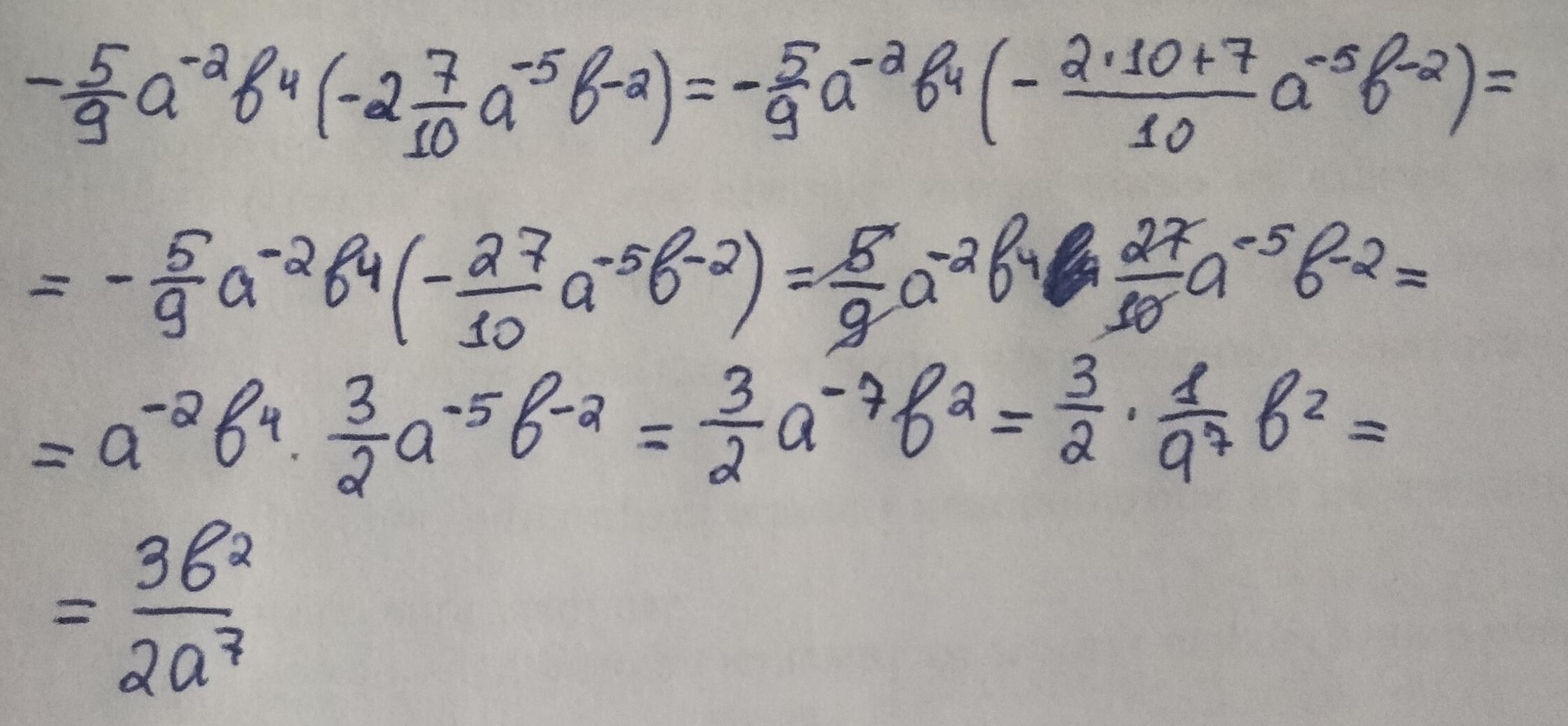 (5/9 * 27/10) * а-⁷ * в² = (1/1 * 3/2) * а-⁷ * в²=