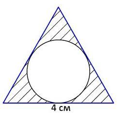 Площа заштрихованої фігури дорівнює (12√3-4π)/3 см²