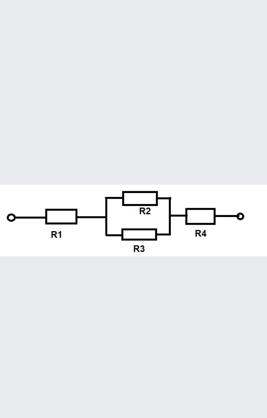 де R_total - загальний опір, R1, R2, R3, R4 - опори резисторів.