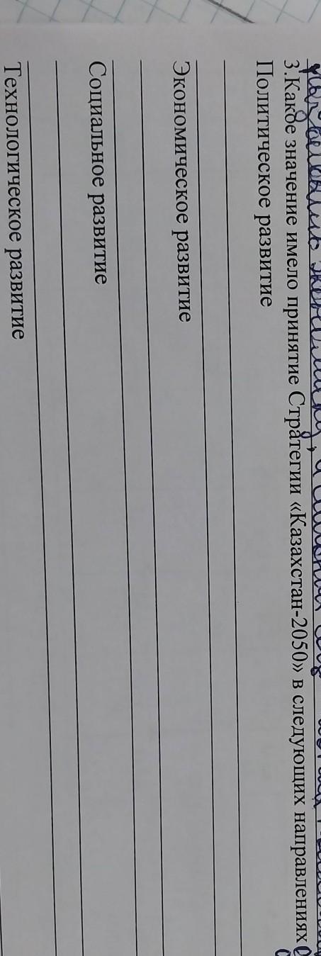 ПОМОГИТЕ ПОЖАЛУЙСТА, СРОЧНО Какое значение имело принятие Стратегии «Казахстан-2050» в следующих направлениях