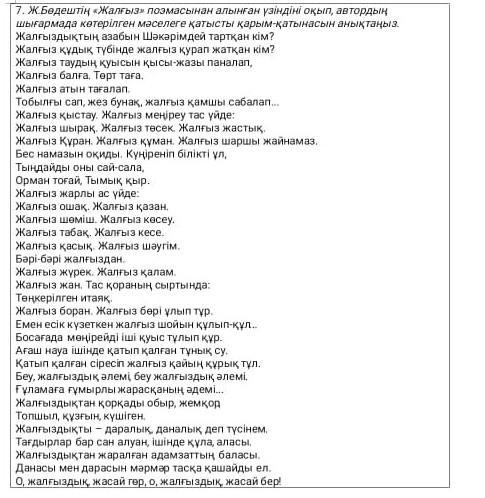 Автор бұл поэмада 2 мағнада жалғыз деп айтып тұр . Біріншіден жалғыз деп туыс , көрші көлемсіз жалғыз адаммын деп айтып тұр . Екіншіден ол кері қайталанбас құбылыс , яғный дәл Абай секілді ақылды , дәл сол секылді адам жоқ , Абайдан басқа деп ол жалғыз дегені . Ал шумақтарды табиғатты өзінің көңіл күйі мен сиппаттап тұр.