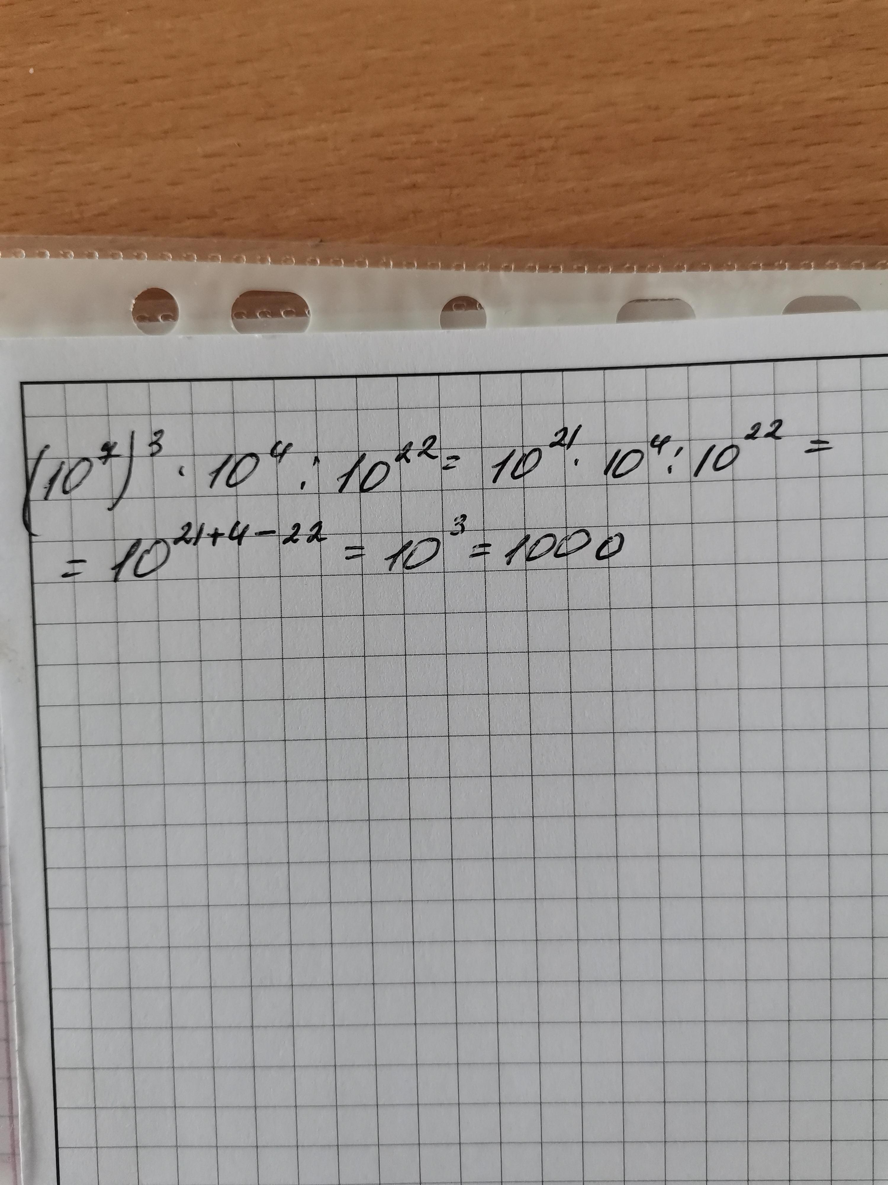 (10⁷)³ × 10⁴ : 10²² = 10²¹ × 10⁴ : 10²² = 10²⁵ : 10²² = 10³ = 1000