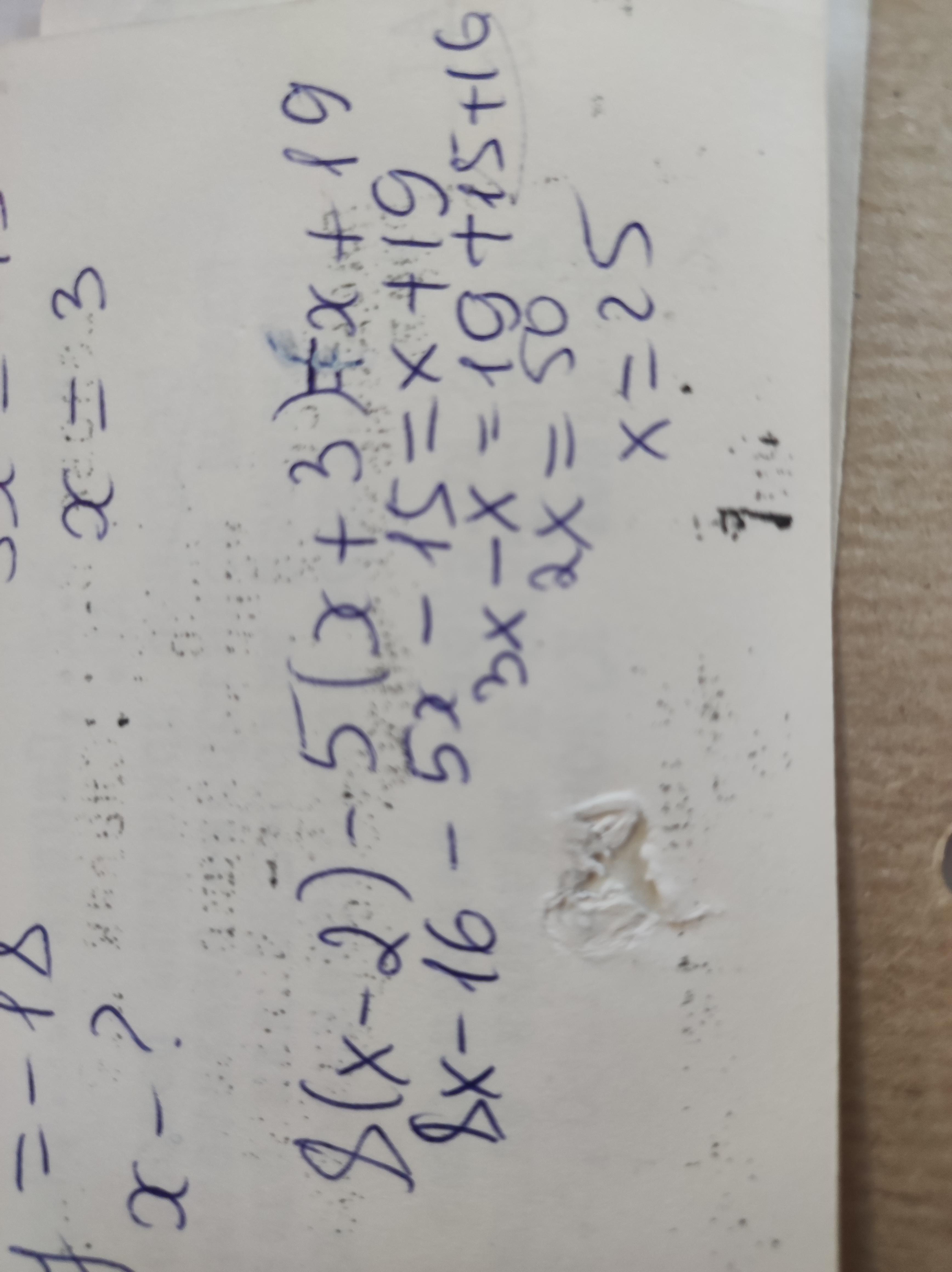 Розв'яжіть рівняння 8(х - 2) — 5(x +3) = x + 19 срочно у меня сейчас к.р идёт пожалуйста срочно дам 20 балов !!!!!!