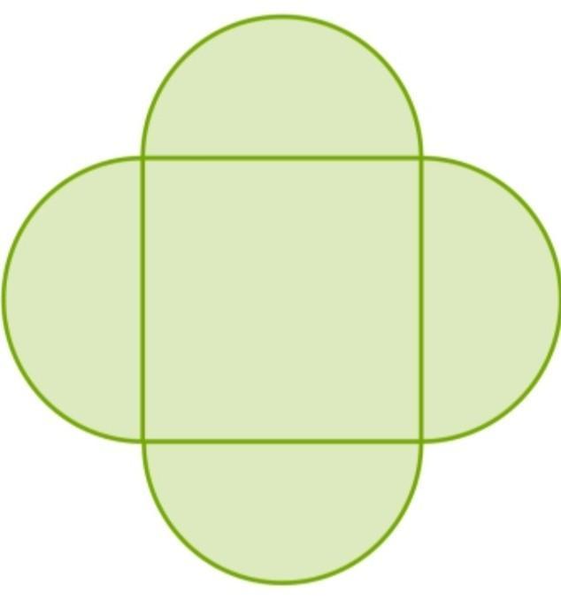 У дворі було зроблено квіткову клумбу, яка має форму квадрата і чотирьох півкіл.