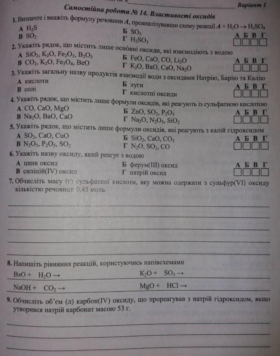 9. Щоб обчислити об'єм карбон(IV) оксиду (CO₂), необхідно знати коефіцієнт стехіометрії реакції між карбон(IV) оксидом та натрій гідроксидом. Без цієї інформації неможливо точно визначити об'єм CO₂, який утворився.