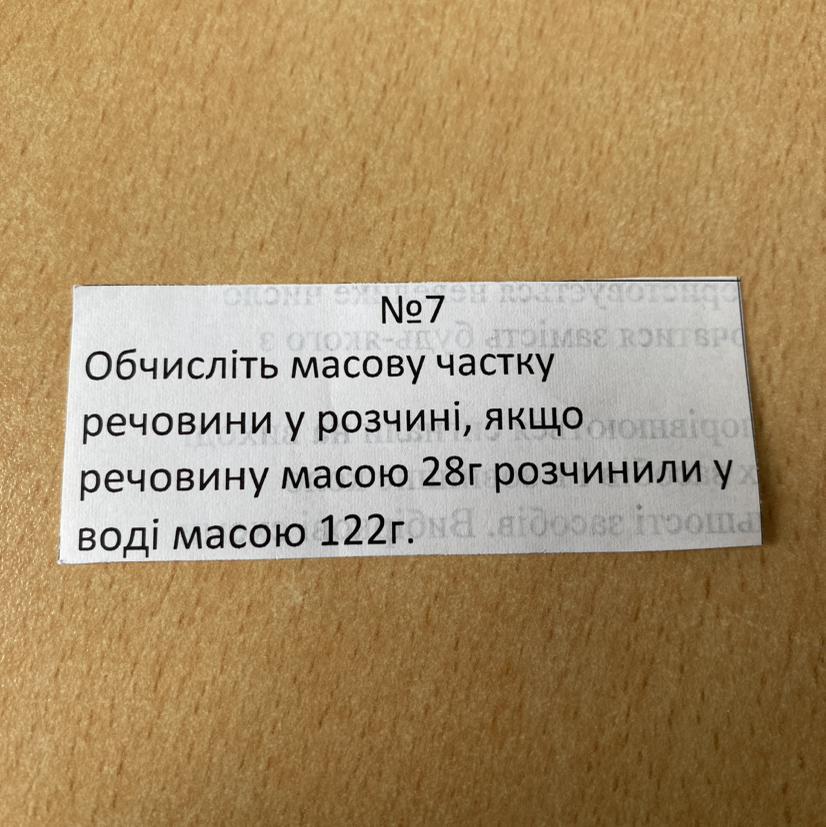 масова частка речовини = (маса речовини /масу розчину ) * 100