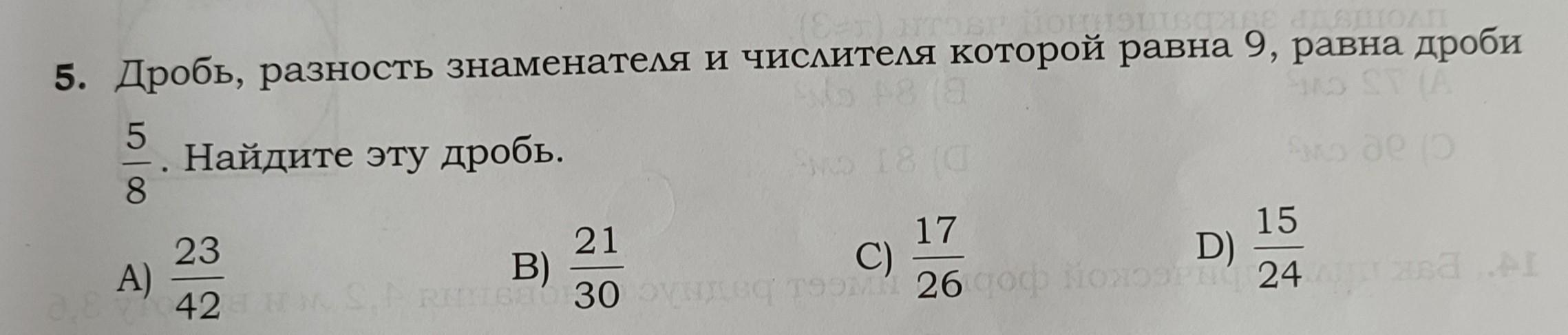 Дробь, разность знаменателя и числителя которой равна 9, равна дроби 5/8 . Найдите эту дробь.