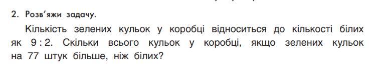 як 9:2. Скільки всього кульок у коробці, якщо зелених кульок