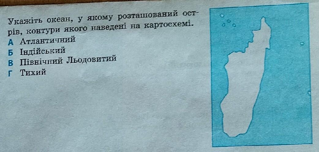 Укажіть океан, у якому розташований острів, контури якого наведені на картосхемі.