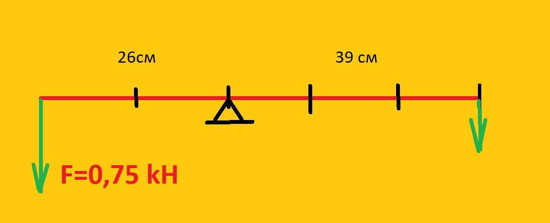 БУДЬЛАСКА ТІЛЬКИ МАЛЮНОК,БЕЗ ВІДПОВІДІ .До правого плеча важеля завдовжки 26 см прикладено силу 0,75кн. Чому дорівнює сила, яку слід прикласти до лівого плеча важеля, щоб важіль перебував у рівновазі?. Довжина лівого плеча становить 39 см. Виконати пояснювальнИЙ малюнок.