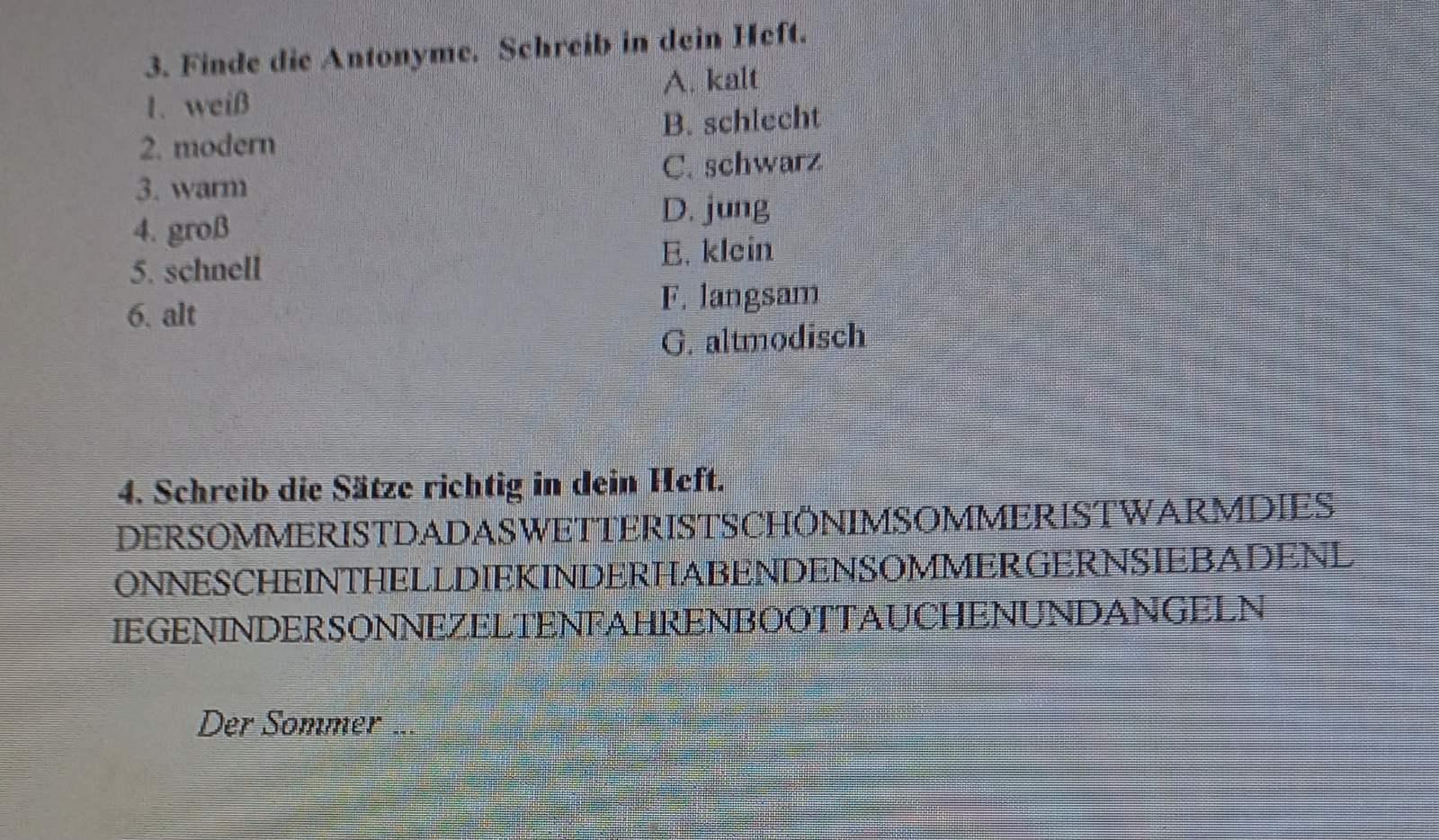 weiß-schwarz modern-altmodisch warm-kalt groß-klein schnell-langsam alt-jung