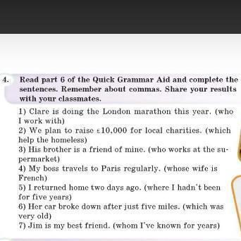Read part 6 of the Quick Grammar Aid and complete the sentences. Remember about commas.