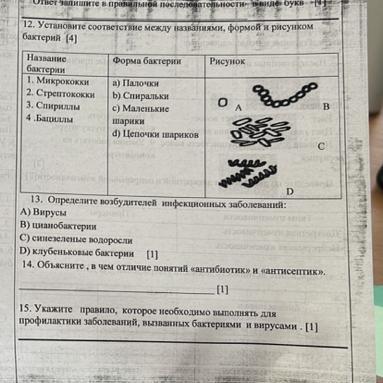 | 14. Объясните, в чем отличие понятий «антибиотик» и «антисептик».