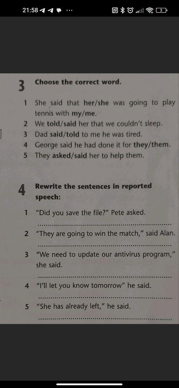 1. She said that she was going to play tennis with me.