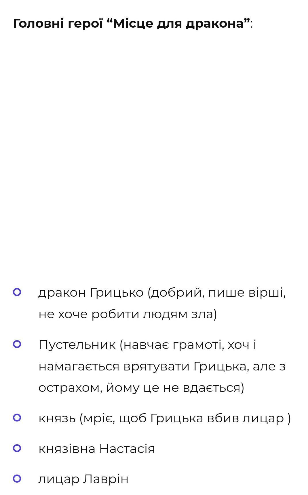 Образи- Дракона Грицька, Пустельника, Князь, Настасія, Лаврін.