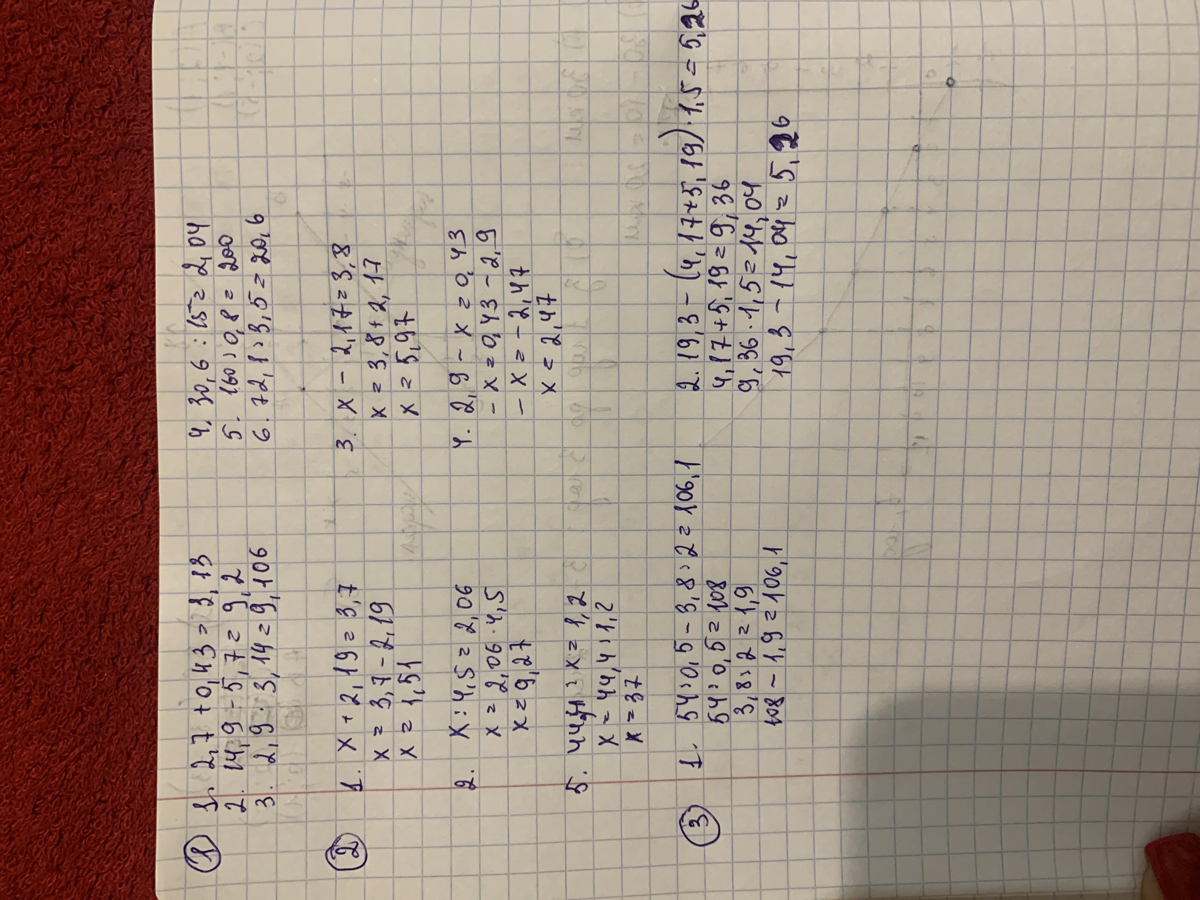 2) 19,3 - (4,17 + 5,19) × 1,5 = 19,3 - 9,36 × 1,5 = 19,3 - 14,04 = 5,26