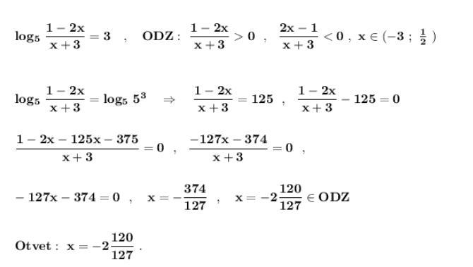 Представим число 3 через логарифм . Затем из равенства функций будет следовать равенство аргументов .