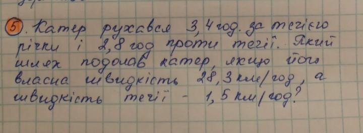 2) 28,3-1,5=26,8(км/год) - швидкість катера проти течії.