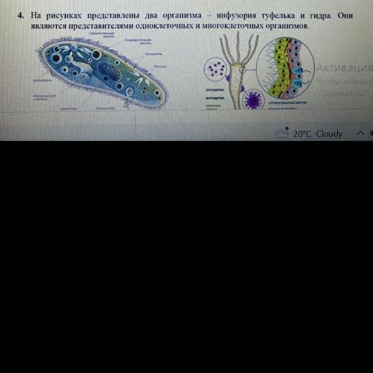 4. На рисунках представлены два организма - инфузория туфелька и гидра. Они