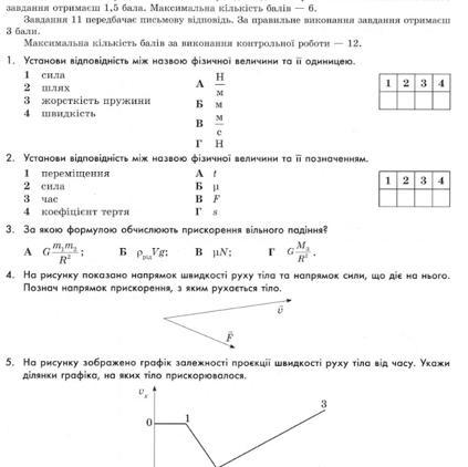 4. На рисунку показано напрямок швидкості руху тiла та напрямок сили, що діє на нього.