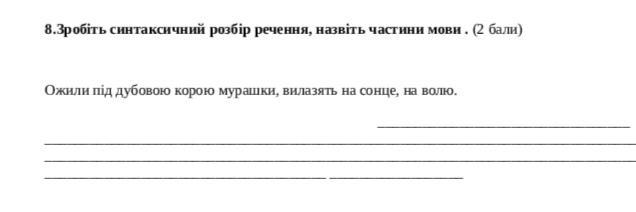 Дубовою прикметник, корою іменник, мурашки іменник, вилазять дієслово, на прийменник, сонце іменник, на прийменний, волю іменник